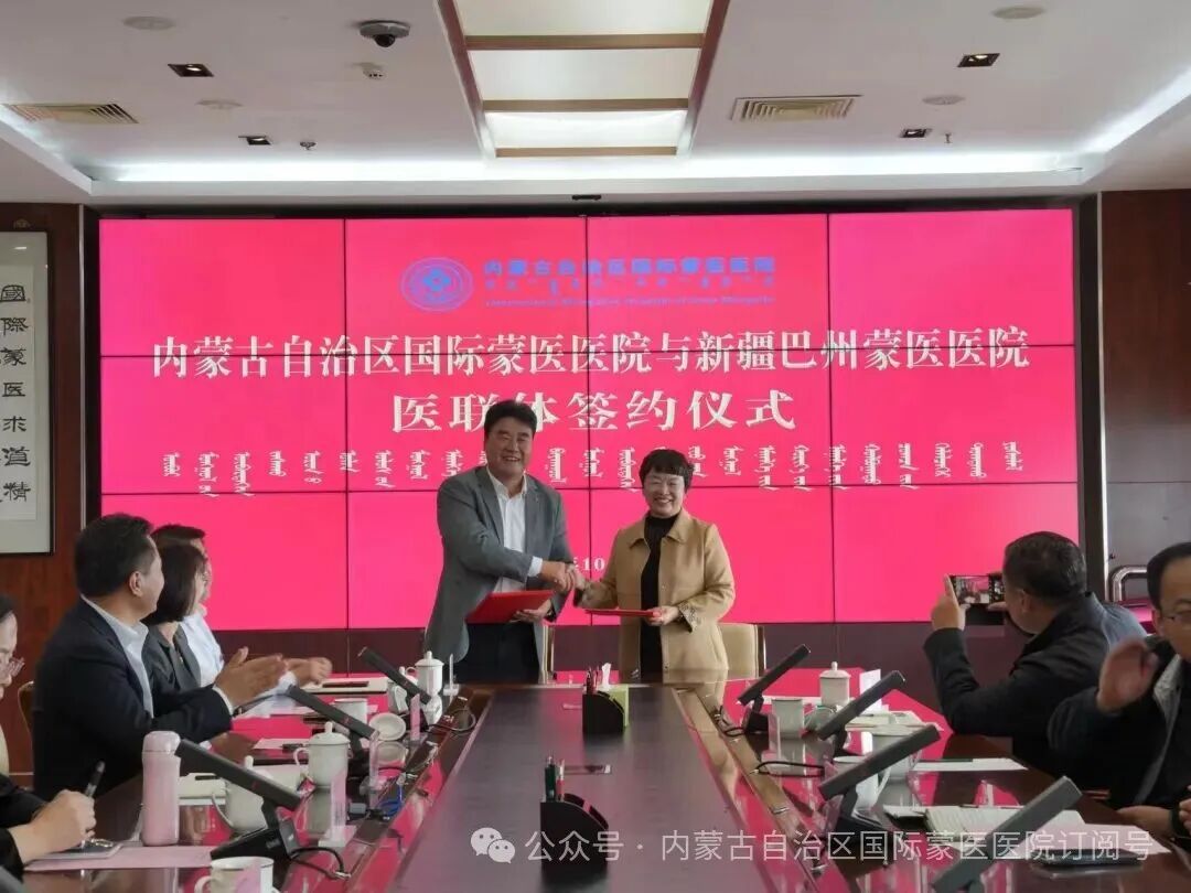 会上,彭建峰书记与于文华副书记分别代表内蒙古自治区国际蒙医医院和新疆巴音郭楞蒙古自治州蒙医医院续签《内蒙古自治区国际蒙医医院医疗联合体(蒙医药传承创新高层协同体)协议书》。此次交流与合作协议的续签,不仅是对双方过往协作成果的巩固与肯定,更是开启更深层次、更宽领域合作的关键契机,为两地民族医药事业协同发展注入了新动能。我院将以此次续约为全新起点,牢牢把握合作机遇,共同以更实举措、更优机制推动民族医药事业高质量发展,让蒙医药这一文化瑰宝在守护群众健康、满足民生需求中发挥更大作用,切实把合作成果转化为惠及各族群众的健康福祉。