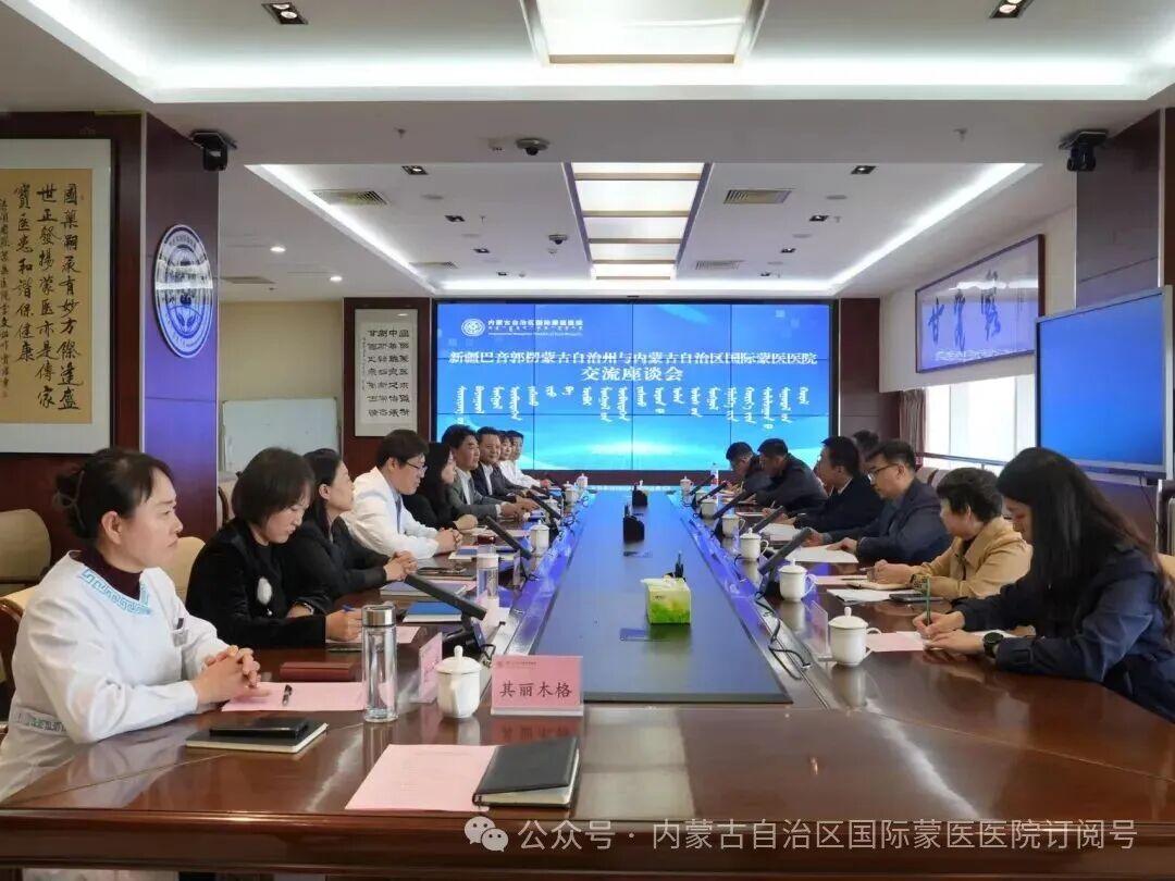 10月13日,新疆巴音郭楞蒙古自治州党委副书记张鑫,新疆巴音郭楞蒙古自治州卫生健康委党组书记、副主任王清玉,新疆巴音郭楞蒙古自治州人民医院党委书记、副院长许多恒,新疆巴音郭楞蒙古自治州蒙医医院党委副书记于文华,新疆巴音郭楞蒙古自治州蒙医医院党委委员、副院长杨金山等一行7人来我院参观座谈。内蒙古自治区卫生健康委中医药(蒙医药)传承发展处处长海霞,我院党委书记彭建峰、党委副书记巴特金、副院长纳顺达来、纪委书记刘淑清、副院长郎海燕及相关科室负责人参加会议。纳顺达来副院长主持会议。