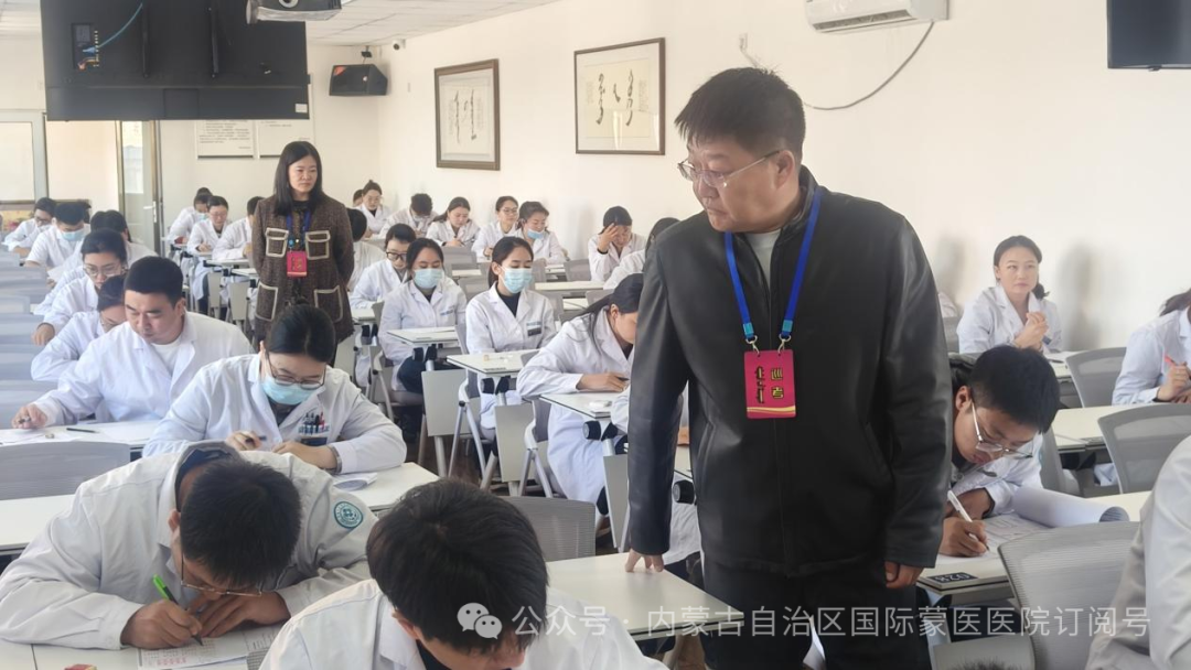 考核期间,自治区卫生健康委中医药(蒙医药)传承发展处处长海霞,自治区卫生健康医学教育考试中心副主任乌日图、医学教育科科长苗旭,我院副院长纳顺达来、纪检部部长舒雅等领导深入各考场巡视督导。领导一行详细查看了考站设置、考核流程及蒙医药特色考核内容实施情况,对医院考核组织的规范性、考风考纪的严肃性及蒙医药人才培养的针对性给予充分肯定,并就进一步优化蒙医住培教学体系、强化实践技能培养提出指导意见。