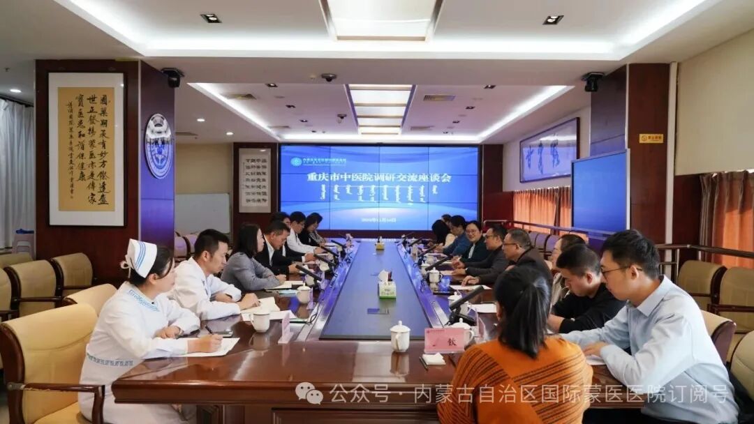 唐玲书记一行实地参观了一楼门诊大厅、骨伤科、布病科、蒙药房、蒙医护理门诊、包氏正骨科、消化二科、蒙医药实物展柜、心身医学科、点穴反射疗法科等特色科室,现场观摩正骨术、温针、火针、点穴反射等传统疗法,并与蒙医特色科室专家进行现场交流,详细了解各科室建设情况。彭建峰书记、院办主任孙淑艳在参观过程中详细介绍了我院的基本情况,包括医院的规模、文化特色及近年来的发展亮点等方面。 座谈会上,巴特金副书记介绍了医院在急危重症诊疗中心建设方面的创新举措,强调了全流程一体化管理的重要性。同时,提到西医科室的差异化发展方向,并表达了与重庆市中医院在急危重症和民族医学领域开展合作的愿望。纳顺达来副院长围绕我院的发展概况、特色、科研工作及医院“十五五”发展规划等情况阐述了医院的未来发展方面。重庆市中医院资源合作处、康复科、针灸科负责人及骨干围绕本科室建设情况、工作亮点等方面进行分享。我院院长办公室、党委办公室、医联体办公室、护理部、医务部负责人围绕我院科室业务工作、党建工作、医疗管理、护理质量进行工作交流。 唐玲书记对我院的热情接待表达了诚挚感谢,对我院扎实推进蒙医药高质量建设表示肯定。她强调,中医与蒙医作为我国传统医学的重要组成部分,在核心理念与健康追求上有着深刻共通性。她指出,人才培养与医疗服务是传统医学发展的核心抓手,希望以双方现有交流为起点,将来在这两大领域开展实质性合作,一是可通过联合开展学术研讨、临床带教、研修培训等活动,打通中医与蒙医人才培养通道,促进两个医疗体系的经验互鉴与技能互补。二是可探索在疑难病症联合诊疗、特色疗法推广、健康管理服务等医疗场景中开展协作,让传统医学的优势更好地服务于两地群众健康。期待通过持续深化交流,不仅能实现双方专业水平的共同提升,更能为传统医学的传承创新注入新活力,共同为守护人民健康贡献传统医学力量。 彭建峰书记对唐玲书记一行的到来表示欢迎。他表示,学科建设与科研合作对医院高质量发展起着核心支撑作用, 学科建设是医院竞争力的 “基石”,科研合作则是突破发展瓶颈、实现创新升级的 “引擎”,二者相辅相成,共同推动医院在医疗、教学、科研领域实现协同进步。同时他也坦诚提及我院当前发展中的挑战以及对重庆中院在科研创新、学科建设领域深厚实力的认可,明确表达了深化合作的迫切意愿,希望能与重庆市中医院携手,在蒙医与中医交叉领域的科研项目联合攻关、学科建设经验互鉴、科研人才联合培养等方面开展实质性合作,借助双方优势资源互补,共同破解发展难题,推动传统医学科研与学科建设迈向新高度,为我国传统医学传承创新发展贡献更大力量。