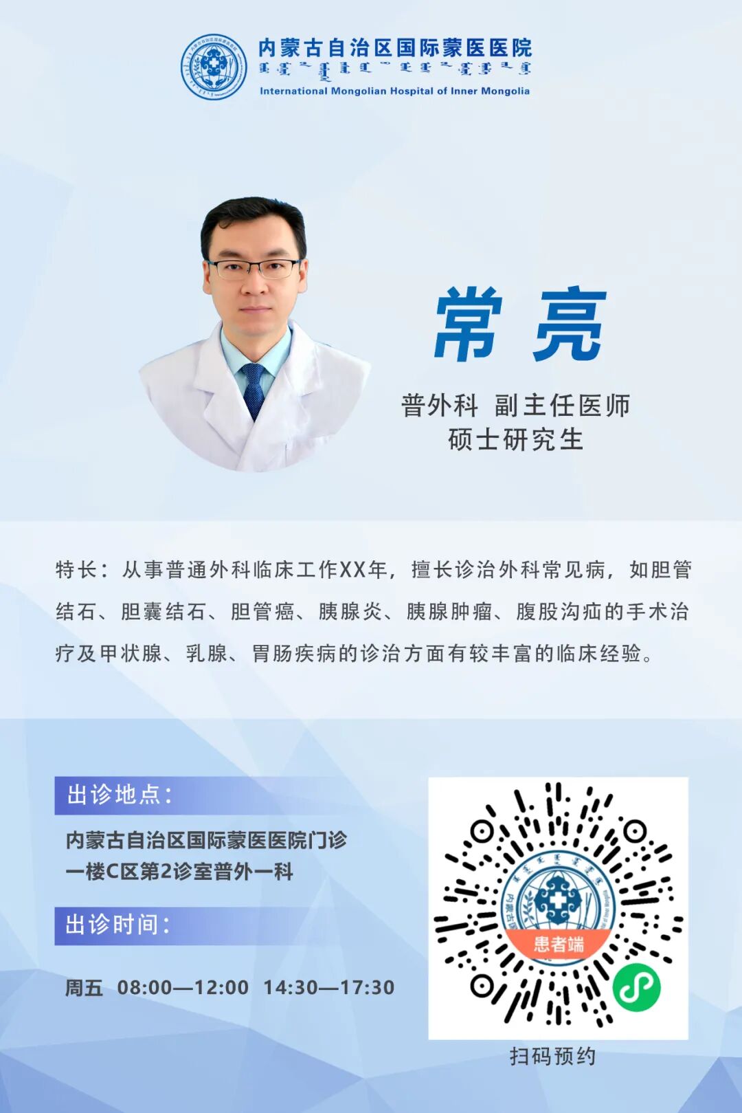名医推介 | 普外二科:佟山、夏医君、顾新、乌云毕力格、李富海、阿拉达尔图、乌恩其格其、薛凌波