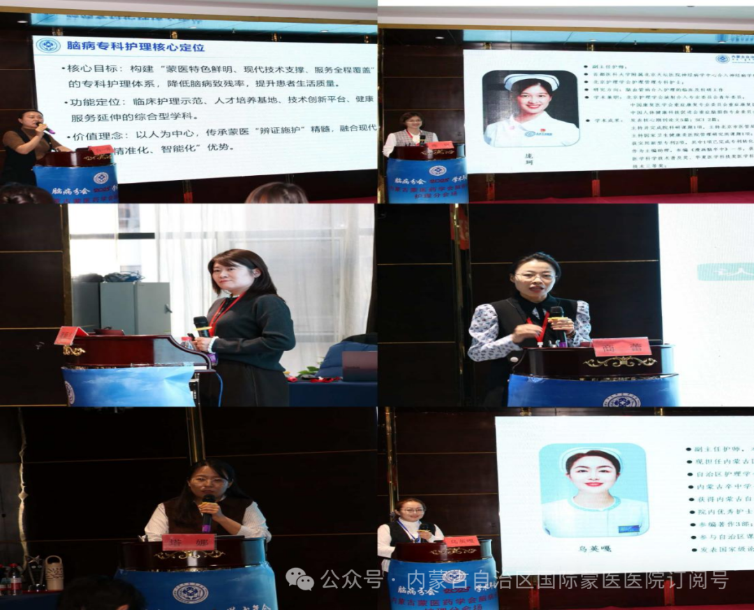 学术交流环节,区内外知名专家围绕脑卒中、老年认知障碍、帕金森病等脑病领域热点问题展开深度分享。专家们分别以《我国慢病管理模式研究进展》《关于人工智能赋能蒙医临床》《论蒙医“心-脑轴”理论》 《复杂动脉瘤的介入治疗》等为题,结合临床典型案例,解析蒙医“三根”“七素”理论在脑病诊治中的应用逻辑,展示脑针疗法、蒙药配伍、放血疗法等特色技术与现代医学影像、微创治疗相结合的创新成果。