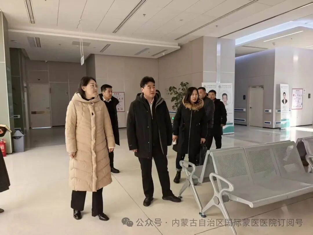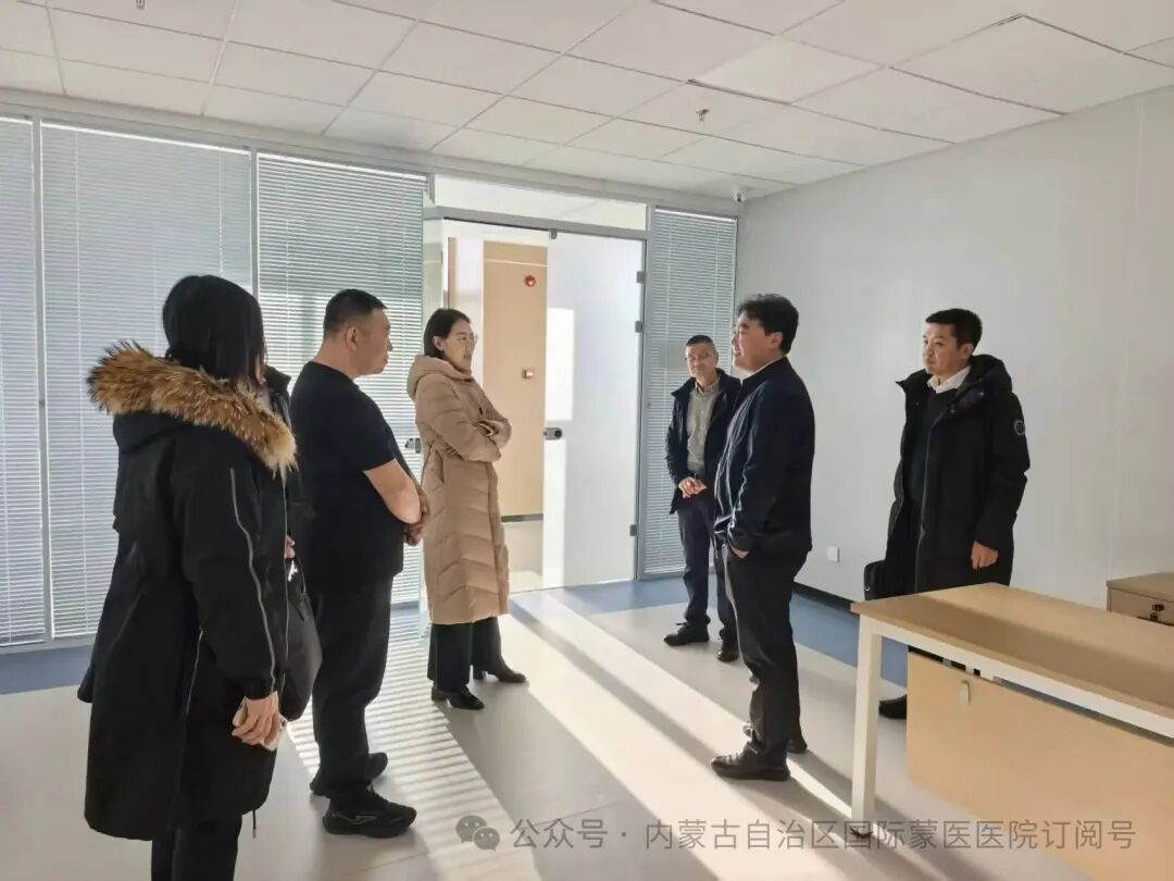 ▲在邱珺副市长陪同下,彭建峰书记一行参观了二连浩特市蒙中医院新院区