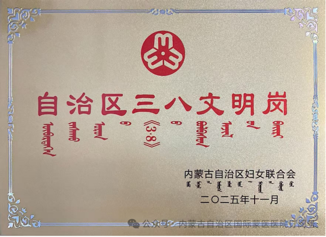 经自治区妇女联合会严格评审,我院蒙医儿童康复科凭借卓越的专业素养、崇高的医德医风和突出的工作业绩,荣获“自治区三八文明岗”荣誉称号,这是对我院蒙医特色专科建设的充分肯定,也是对全体女职工奋发有为精神风貌的高度褒奖,更是医院精神文明建设取得的又一丰硕成果。