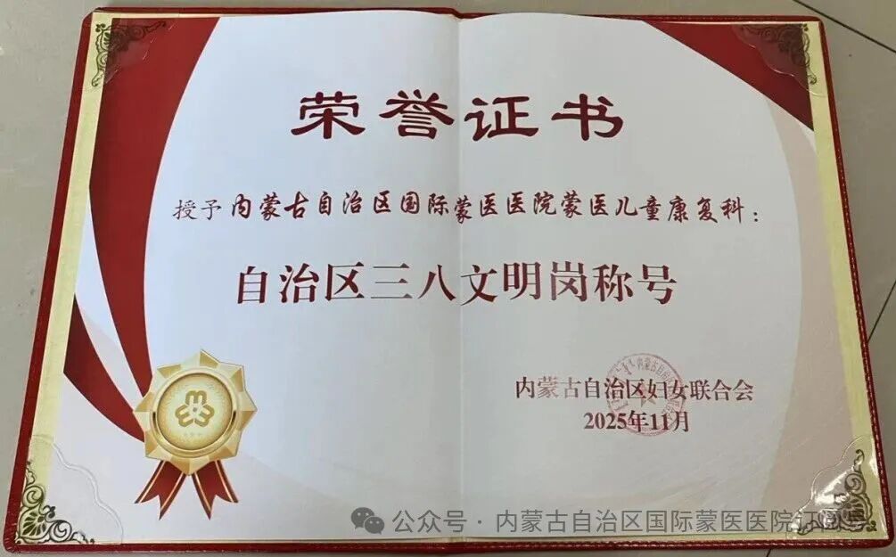 【喜讯】我院蒙医儿童康复科荣获“自治区三八文明岗”荣誉称号