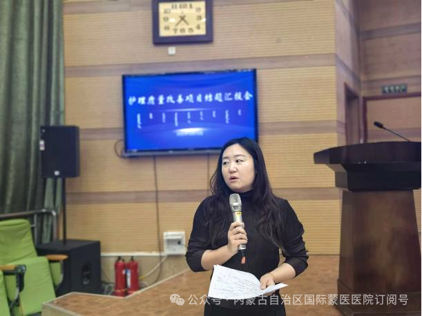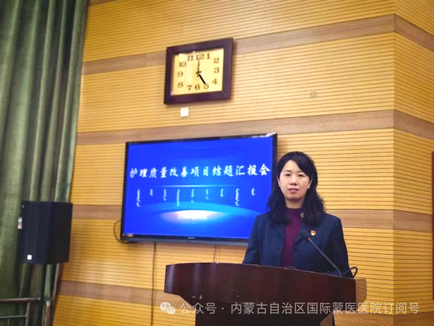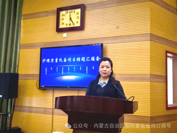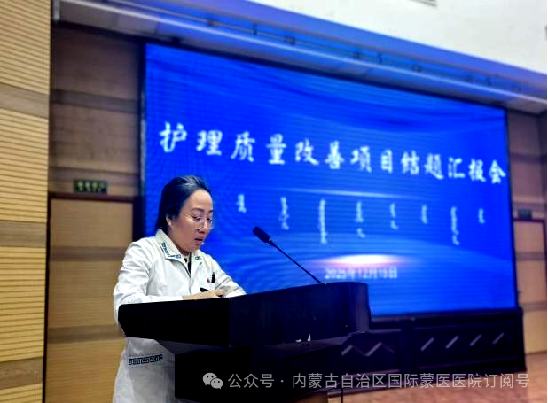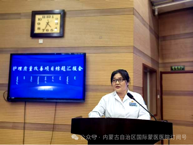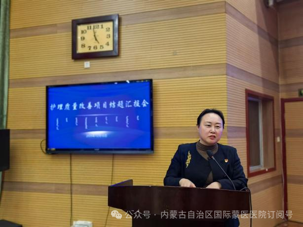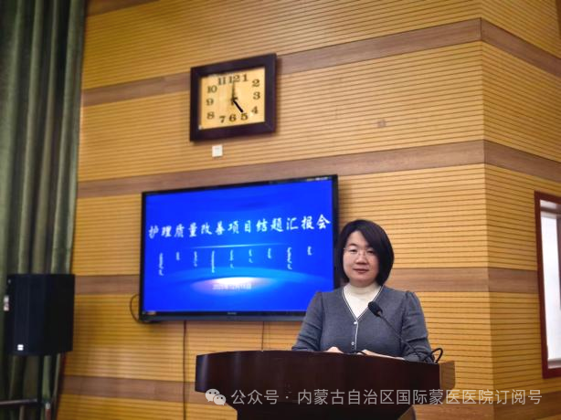 本次汇报会选中的21个项目,均从全院33个护理单元和4个专科护理小组申报的49个项目中,经过申报书审查、PPT汇报评分、专家论证等多轮严格评审最终确定。各项目团队围绕临床护理工作中的重点难点问题,聚焦患者安全,结合蒙医护理特色优势,运用PDCA、FOCUS-PDCA、品管圈、头脑风暴、鱼骨图等质量管理工具,精准选题立项、科学规划设计,严格按照既定计划稳步推进项目实施。 各项目汇报人员围绕项目选题、项目设计、实施过程、项目成果、创新与推广性以及总结体会等方面进行了专题汇报。 ▲21名“优秀护理质量改善项目”结题汇报人员 汇报过程中,评委们从项目的科学性、创新性、实用性及推广价值等方面进行了客观、公正的评分,给予了精彩点评。 ▲评委照片 护理部主任白一萍对本次结题总结汇报会进行了总结讲话。她对“优秀护理质量改善项目”所取得的丰硕成果给予了肯定,对项目组全体成员及全院护理人员的辛勤付出表示衷心感谢。此次结题总结汇报会不仅为护理人员搭建了学习交流的平台,促进了质量改善经验的分享与推广,更激发了全院护理人员参与质量改进的积极性和主动性。希望全院护理人员要以此次项目结题汇报会为新的起点,切实巩固项目建设成效,持续创新护理服务模式,精进专业素养能力,深化护理质量持续改进工作,全力为广大患者提供优质、高效、安全、专业的护理服务,为医院高质量发展注入新动能。