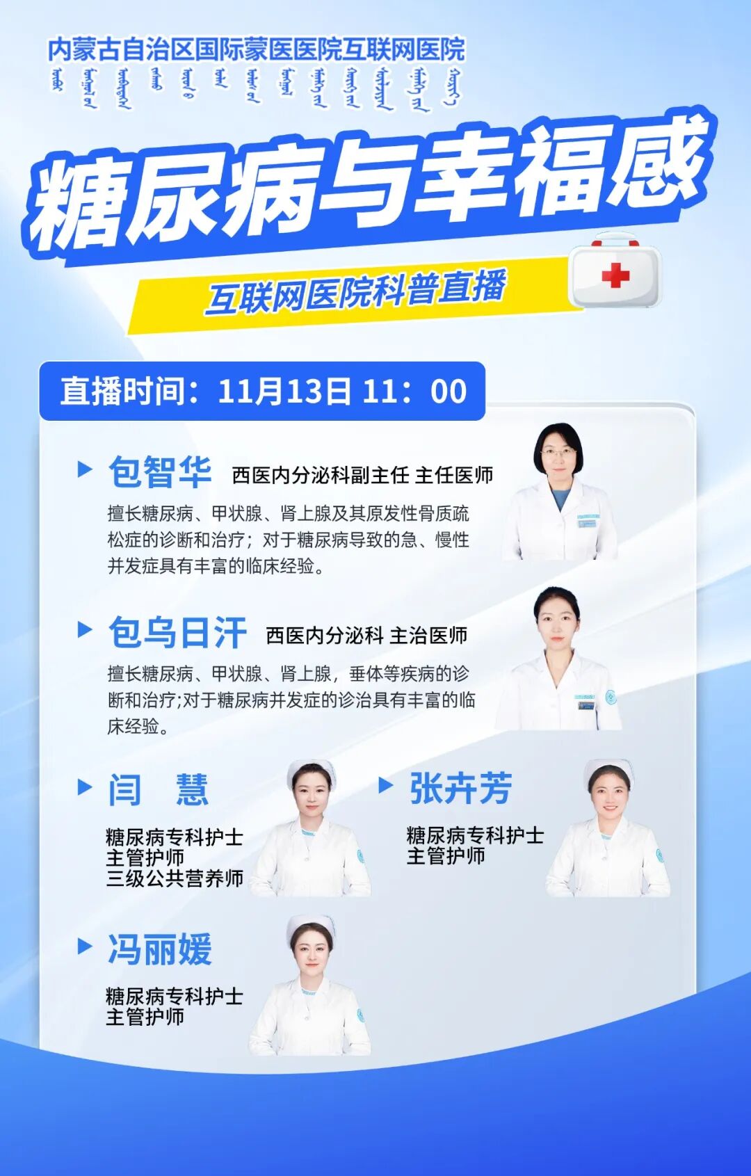 11月13日来互联网医院云医直播间 西医内分泌科医生为您讲解“糖尿病与幸福感”那些事儿