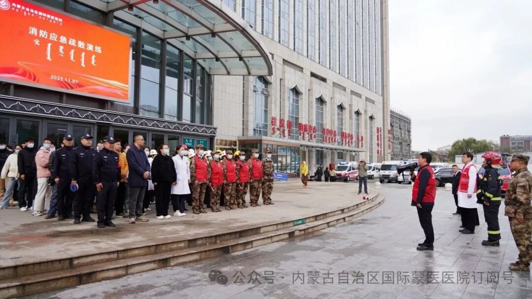 2025年“消防宣传月”系列活动之二 02 我院开展消防疏散应急演练 为进一步强化全院消防安全管理,提升医护人员应急处置能力和多部门协同作战水平,筑牢医院安全生产防线,11月7日,我院组织开展了全流程、实战化消防应急疏散演练与灭火实操训练。赛罕区消防救援大队全程提供专业指导,医院各科室医护人员、后勤保障人员,呼和浩特市中专路派出所及园艺社区工作人员等参与演练。 本次演练以“模拟实战、贴近实际”为原则,设置多场景实战科目。演练初期,模拟医院门诊地下室突发火情,浓烟迅速蔓延,烟雾报警器应声触发,实战化演练正式拉开帷幕。接到“火情”指令后,医院应急指挥部立即启动消防应急预案,各专项工作组迅速响应、各司其职:抢险组第一时间切断事发区域电源,按照规范流程模拟拨打“119”报警电话,清晰上报火情位置、火势大小、人员分布等关键信息;灭火组快速携带灭火器抵达现场,高效处置初期火情;疏散组人员手持疏散指示牌,全程引导就诊患者及医护人员保持“弯腰、捂鼻、靠墙”的正确姿势,沿预定安全路线快速有序撤离至室外指定安全区域,同时做好人员清点与登记工作。 为提升演练的全面性与协同性,本次活动还特别设置伤员转运场景。医疗救护组与消防救援人员紧密配合,现场演示了担架转运、心肺复苏等急救技能与消防救援的无缝衔接,充分展现了“医消联动”的应急处置效率。在灭火实操培训环节,教官通过“理论讲解+手把手教学”的方式,详细演示了干粉灭火器、水基灭火器等各类灭火器材的使用原理、操作步骤及注意事项,参训人员积极参与实操训练,快速掌握了初期火情扑救的核心技能。此外,交管部门针对高层患者救援演练、应急救援通道保障等工作进行了现场部署与指导,确保救援路线畅通无阻。 整个演练过程紧张有序、衔接顺畅,从火情触发、应急响应、初期扑救,到人员疏散、伤员救治、外部联动,全流程模拟真实火灾场景,有效检验了医院消防应急预案的科学性、可操作性,以及各部门之间的协同配合能力。参训人员纷纷表示,此次演练内容丰富、针对性强,不仅提升了自身的消防安全意识和应急处置技能,更熟悉了火灾发生时的逃生路线和协作流程,为今后应对各类突发消防安全事件积累了宝贵的实战经验。 彭建峰书记表示,医院作为人员密集场所,消防安全事关医患生命财产安全。未来,医院将持续常态化开展消防安全培训与应急演练,不断完善应急预案、优化联动机制,切实把消防安全工作抓细抓实,为人民群众营造安全、稳定、有序的就医环境。