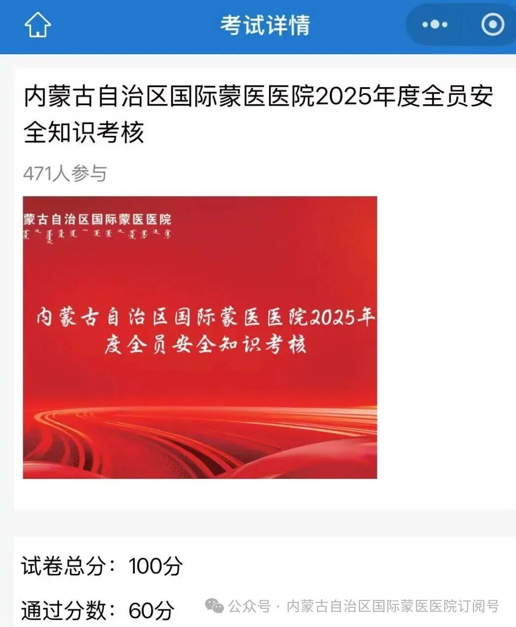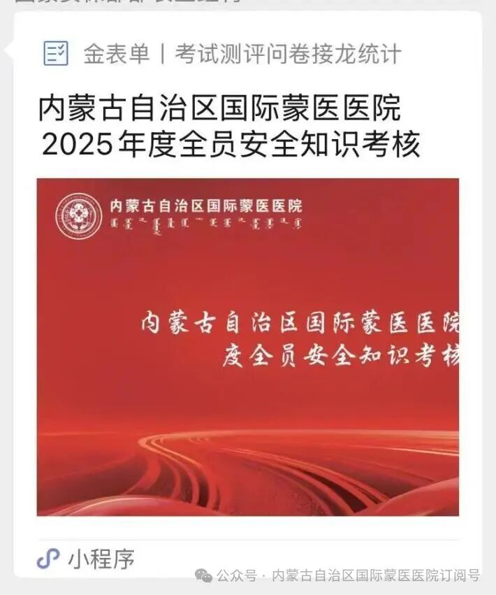 2025年“消防宣传月”系列活动之三 03 我院开展消防安全知识考核 为检验消防安全培训成效,夯实全员消防安全理论基础,消防安全宣传月期间,我院组织开展2025年度全员消防安全知识考核。全院医护人员、后勤保障、行政办公等岗位人员全员参与。 考核试题内容聚焦《医疗机构消防安全管理九项规定》核心要求,重点考查消防“四个能力”建设、火灾报警规范流程、初期火情扑救技巧、人员等应知应会安全知识。 此次考核以“以考促学、以学促用”为核心目标,不仅有效检验了全员消防安全知识的掌握情况,更强化了“人人讲安全、事事为安全、时时想安全”的责任意识。下一步,医院将持续完善消防安全长效管理机制,常态化开展培训、演练与考核活动,不断提升全员应急处置能力,为医患人员营造安全稳定的就医与工作环境。