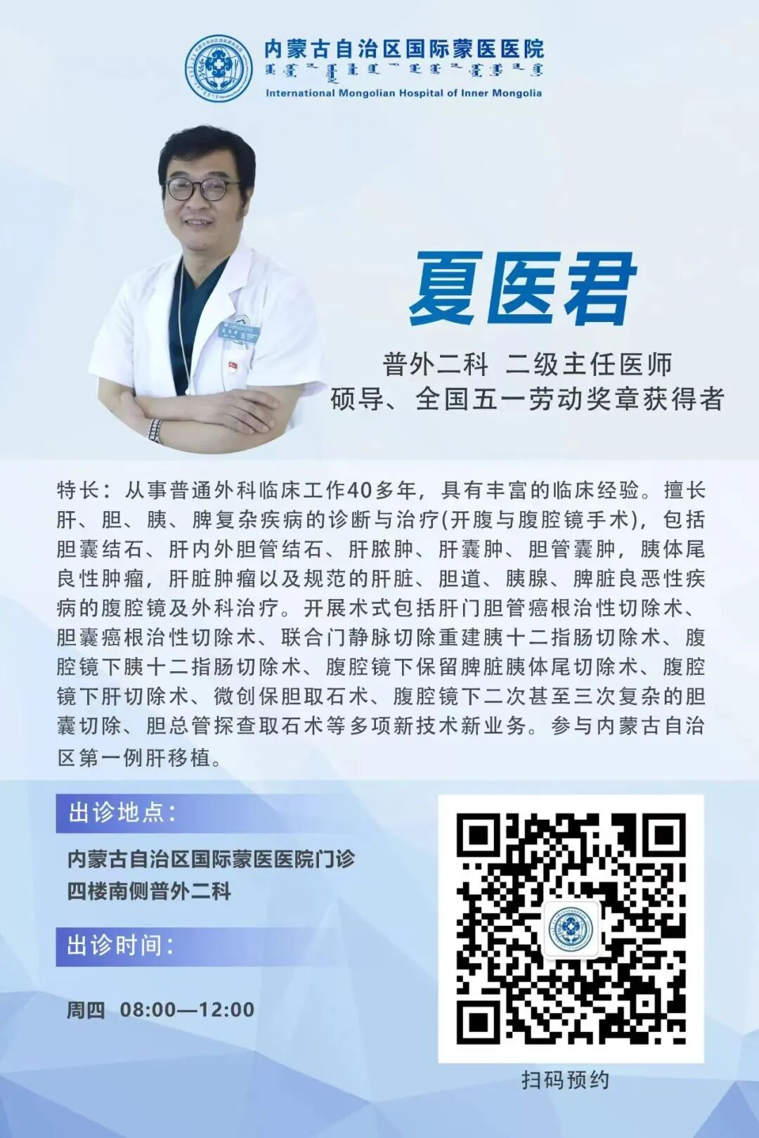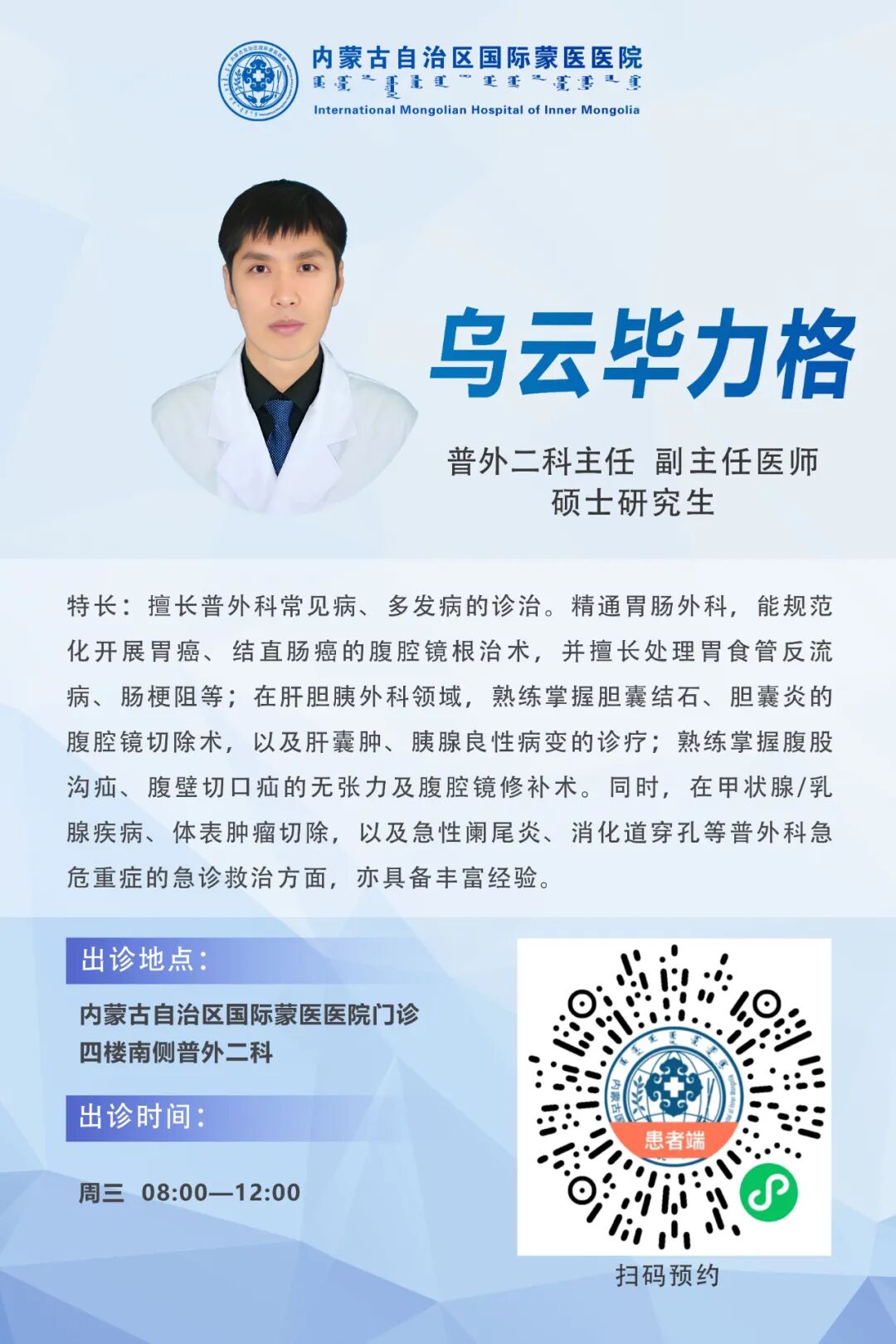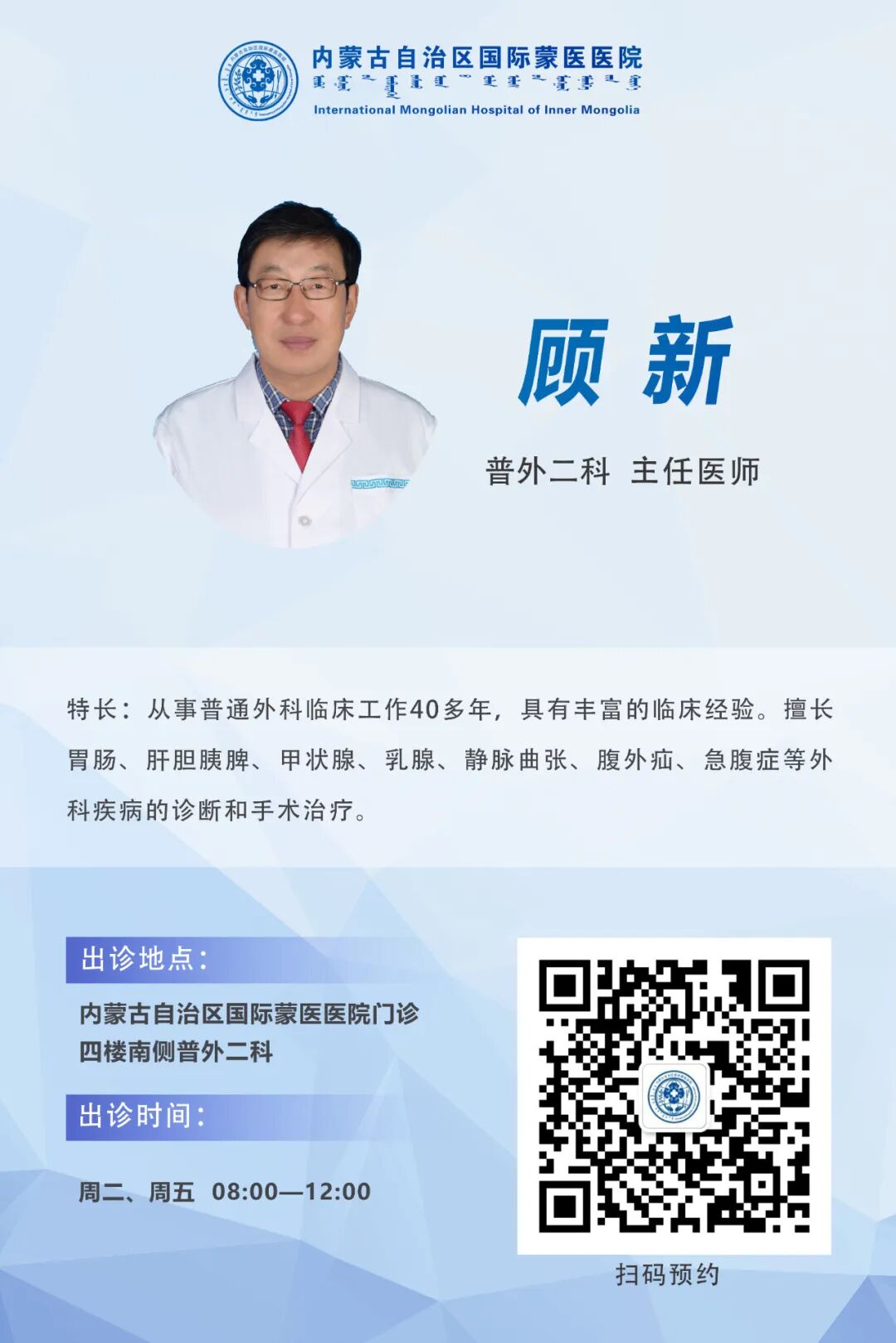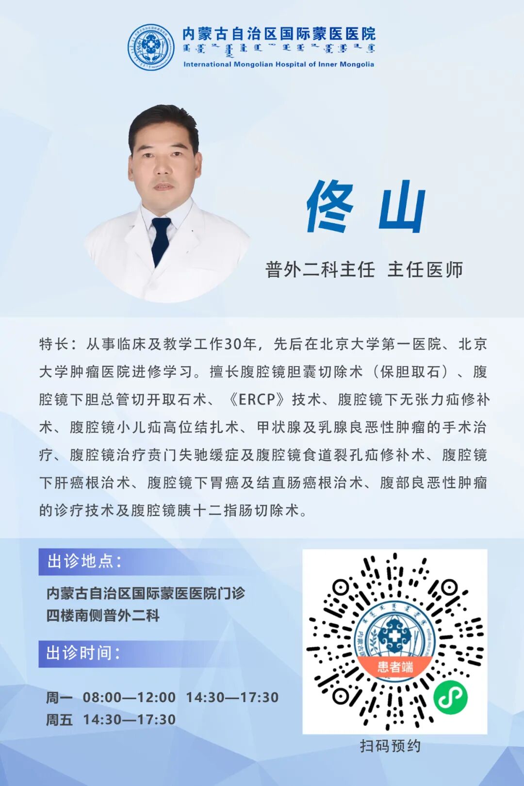 名医推介 | 普外二科:佟山、夏医君、顾新、乌云毕力格、李富海、阿拉达尔图、乌恩其格其、薛凌波