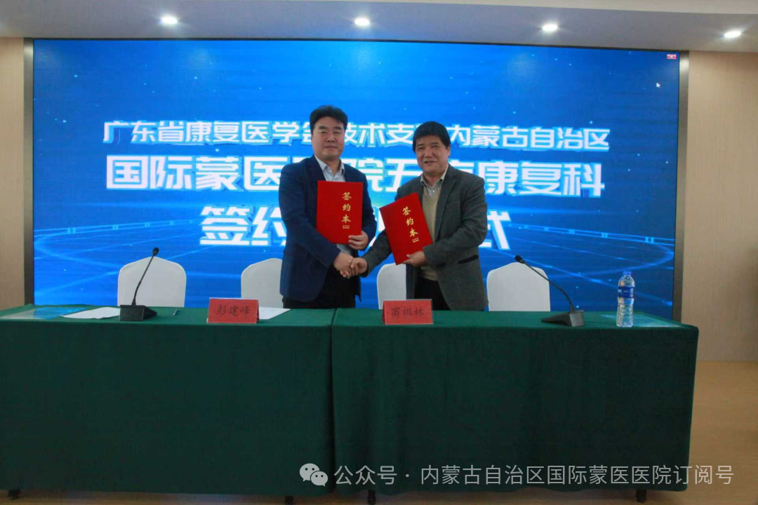 为响应内蒙古自治区专科区域医疗中心建设方案的要求,进一步促进康复医学领域新技术的引进与应用,11月23日,我院举办“广东省康复医学会与我院引进康复新技术签约(挂牌)仪式暨肉毒毒素注射技术与吞咽障碍治疗技术培训班”。自治区卫生健康委中蒙医药管理处处长郝小金、我院党委书记彭建峰、广东省康复医学会会长窦祖林、广东省康复医学会专家李超、谢纯青、陈琼梅以及相关专业人员100余位代表参加会议。我院五疗康复科副主任敖其尔主持开幕式。