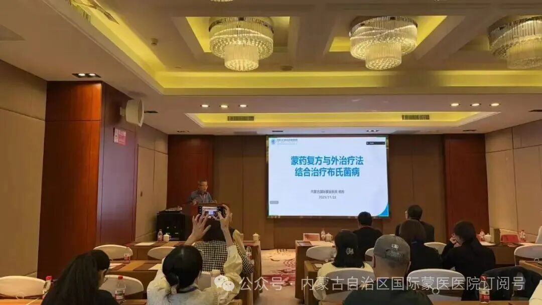 在大会的“第三环节”学术讲座中,布病科主任德胜担任主持人,并作题为《蒙药复方与外治疗法结合治疗布氏菌病》的专题报告。报告系统介绍了我院布病科在蒙西医结合治疗布病方面的临床经验与研究成果,突出蒙医药在缓解症状、改善预后、降低复发率等方面的独特优势,引起了与会专家的广泛关注与热烈讨论。 会议期间,我院与来自北京、内蒙古疾控中心、呼伦贝尔市人民医院等单位的专家学者进行了深入的探讨与交流,进一步拓展了我院在布病诊疗与科研领域的视野,更充分彰显了我院在布病防治领域,尤其是蒙医药特色治疗方向的领先优势与核心实力。 此次参会,不仅提升了我院布病科在全区乃至全国布病学术圈的影响力,也为推动我区布病诊疗规范化、多元化发展贡献了“蒙医力量”。我院将继续发挥自治区重点学科的示范引领作用,深化临床研究与学术交流,为布病患者提供更加优质、高效的诊疗服务。
