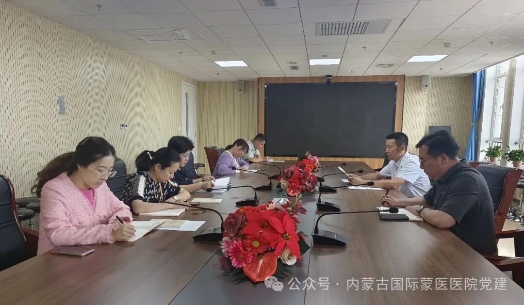 2025年7月4日,内蒙古自治区国际蒙医医院第五党总支第三十党支部召开集中学习会。会上,全体党员围绕“转变工作作风,强化服务意识”进行专题学习研讨。会议要求,全体党员要把习近平总书记关于加强党的作风建设的重要论述转化为实际行动,以更加坚定的决心、更加有力的措施,转变工作作风、增强服务意识,积极投入到临床工作中,为人民群众的健康福祉贡献力量。
