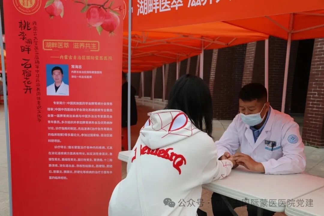 活动现场,医院组织骨伤科、针推科、消化一科、妇科、心身医学科等多个科室的资深专家,把优质的蒙医药健康服务送到内蒙古大学师生身边,以非物质文化遗产交流互鉴,增进各族师生的健康福祉,生动演绎了民族团结、医教协同的美好画卷,更以实际行动践行了服务人民的初心,传递了多民族守望相助、健康共守的时代温情。