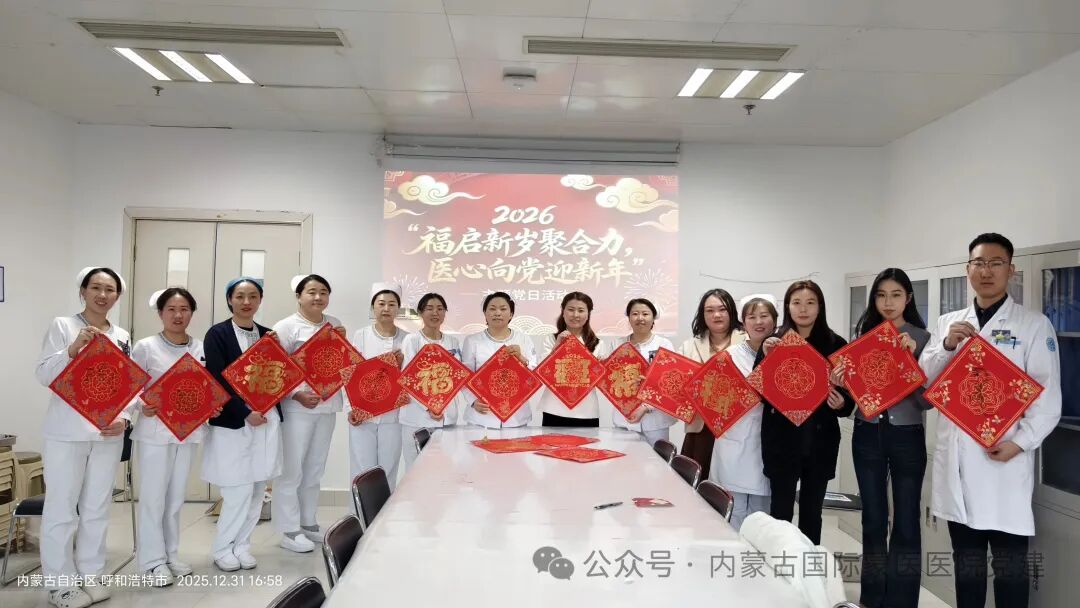 2025年12月31日,内蒙古自治区国际蒙医医院第五党总支第三十四党支部开展“福启新岁聚合力,医心向党迎新年”主题党日暨迎元旦医护团建活动。此次活动以“党建引领+文化润心+团队共建”为主线,精心设计了一系列兼具文化性与互动性的环节。活动现场,党员同志们与医护人员齐聚一堂,写“福”字、做蛋糕,在“医心向党”新年愿望墙上,书写着个人美好期许和对患者安康、医院发展、国家昌盛的真挚祝愿,彰显了新时代医务工作者“人民至上、生命至上”的使命担当。下一步,第三十四党支部将持续深化“党建+”融合模式,不断创新主题党日活动载体,打造有温度、有深度、有力度的组织生活品牌,努力打造政治过硬、作风优良、业务精湛的医护先锋队伍,以更加昂扬的姿态奋进医院高质量发展新征程。